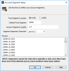 8 Enter your fund setup information, including the fund segment name, segment location, and segment lengths, and click OK.