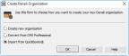 4 In the Create Denali Organization window, select the Import from QuickBooks® radio button.